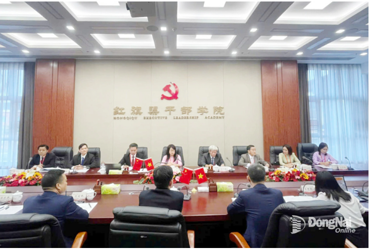 (ĐN) - Nằm trong các hoạt động trao đổi, chia sẻ học thuật tại Học viện Cán bộ Kênh Hồng Kỳ, tỉnh Hà Nam (Trung Quốc), ngày 18-9, đoàn công tác của Trường Chính trị tỉnh Đồng Nai do TS Lê Nguyễn Thị Ngọc Lan, Phó Hiệu trưởng trường làm Trưởng đoàn, đã tham dự hội thảo với chủ đề: “Kinh nghiệm quản lý trường học, đào tạo cán bộ giữa hai nước Việt Nam - Trung Quốc”.